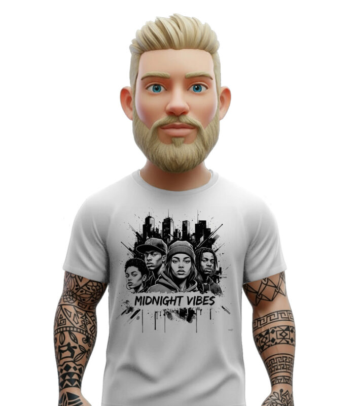 Λευκό T-shirt με ατμοσφαιρικό και μοντέρνο print “Midnight Vibes”