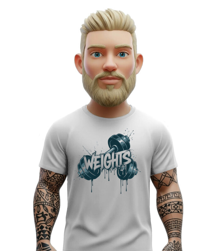 Λευκό T-shirt με print “Weights”, ιδανικό για street workout και casual στυλ.
