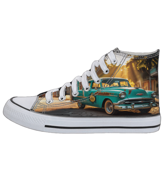 Υφασμάτινα sneakers Cuba Vibes στάμπα, ρετρό αυτοκίνητο, vintage στυλ.