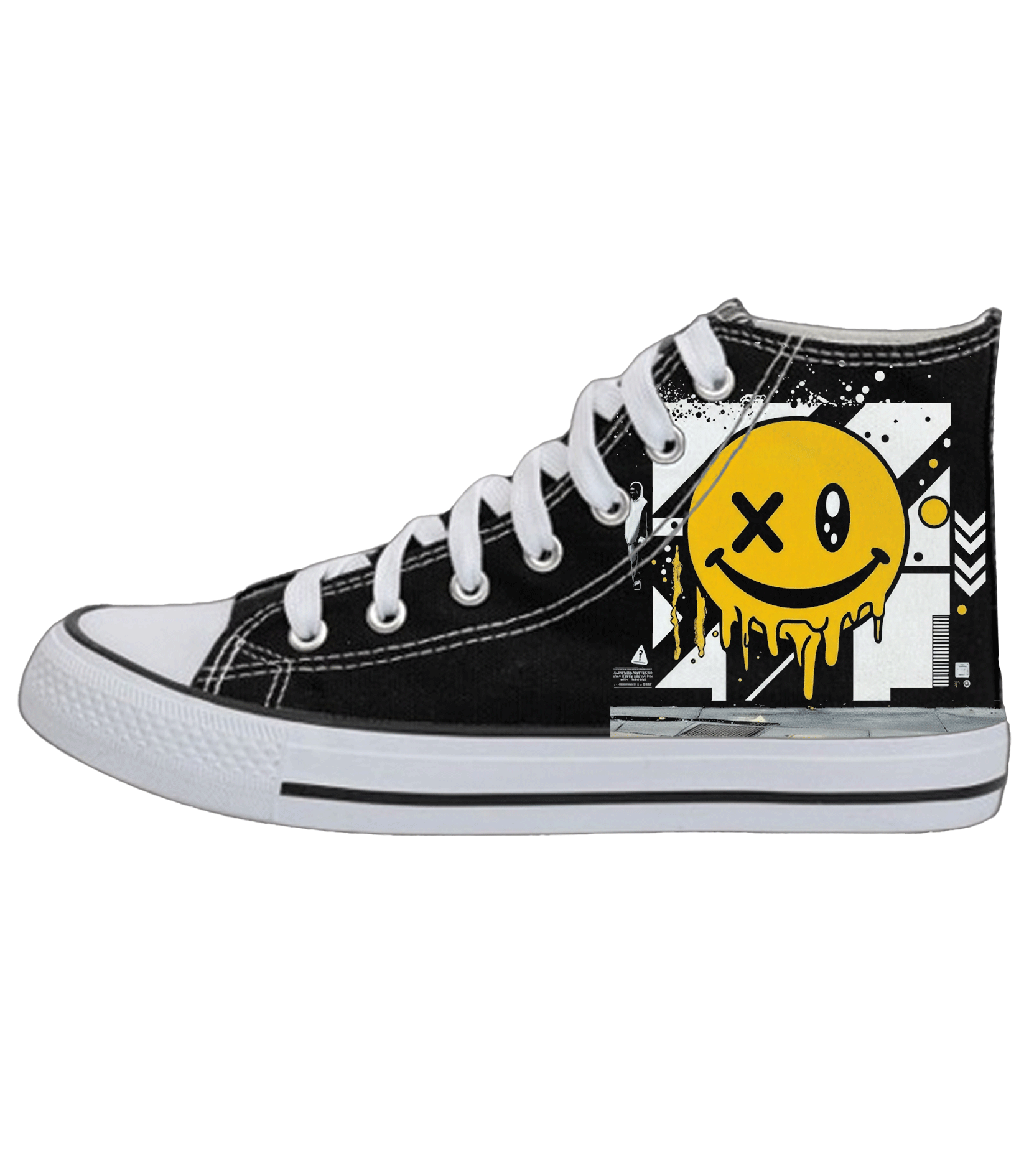 Υφασμάτινα sneakers με happy face στάμπα, χαρούμενο στυλ κάθε μέρα.