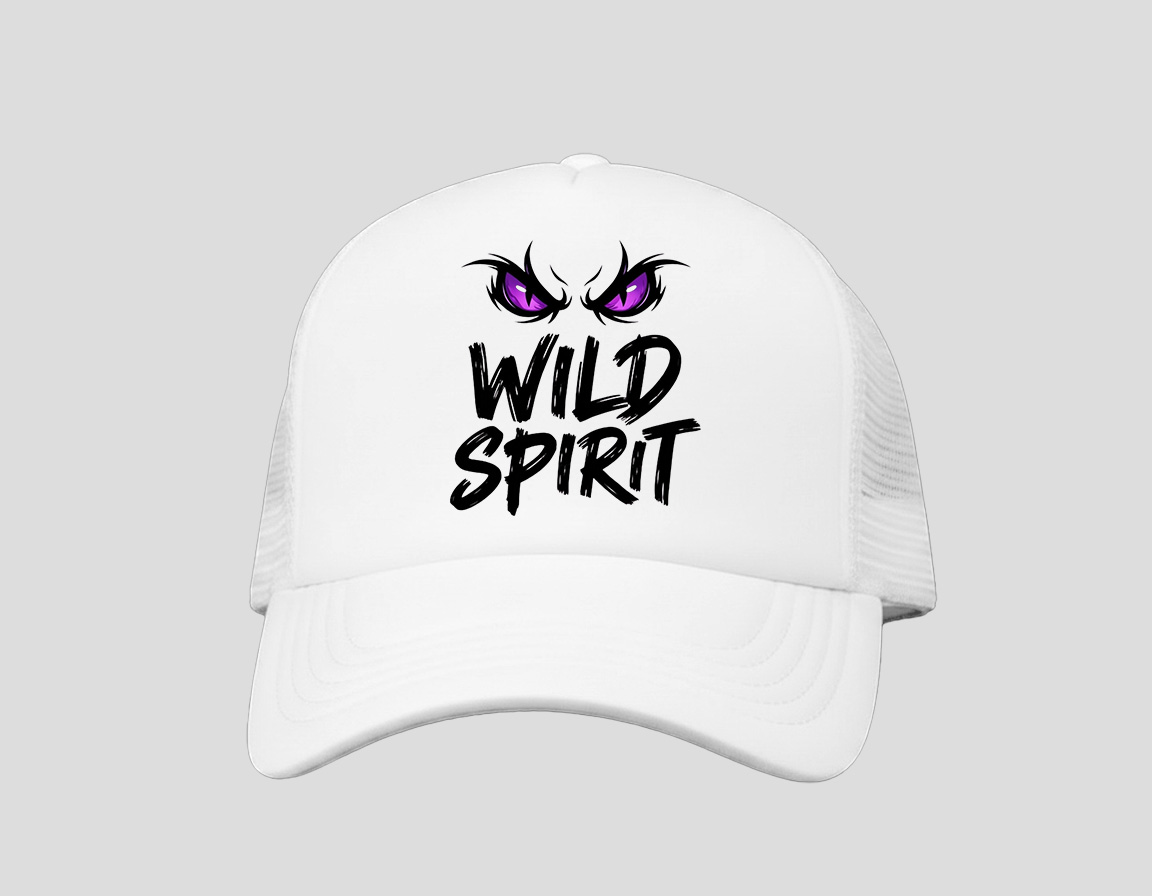 Wild Spirit καπέλο με αγριεμένα μάτια και text “Wild Spirit”, εκφραστικό και δυναμικό στυλ για έντονο χαρακτήρα.